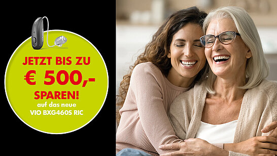 € 250,- Preisnachlass pro Hörgerät bzw. € 500,- bei beidseitiger Versorgung auf das VIO B XG460 RIC in der Bestseller Kategorie (Zuzahlungspreis pro Ohr bei gültiger Verordnung € 1475,- (inkl. Akkuaufpreis zzgl. Ladestation). Nicht mit anderen Aktionen kombinierbar.